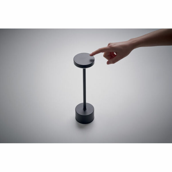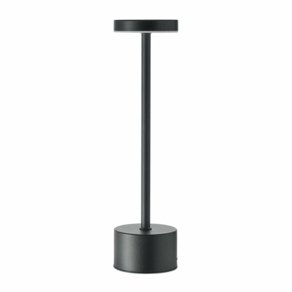 Aluminium tafellamp met 24 LED-lampjes, traploos dimmen, 3 lichtstanden en aanraakbediening. Oplaadbare Li-Ion batterij van 1200mAh met een gebruiksduur van 6 uur.
